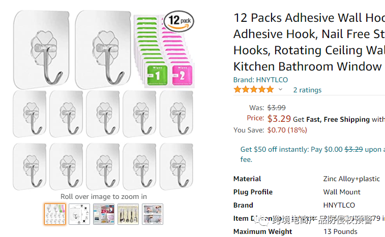 这款墙钩在美亚站需求不减,但不建议上架,因为有专利!预警235