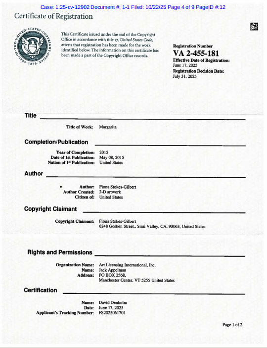 原告Fiona Stokes-Gilbert在过去30年一直为迪士尼、美泰、华纳兄弟等公司设计消费品和纺织品,她的作品都是以数字文件的形式完成。