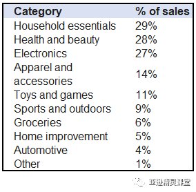 宠物用品:该类别包括宠物食品、玩具和宠物床等物品。 运动和户外用品:该类别包括露营装备、钓鱼用品和体育用品等物品。 办公用品:该类别包括笔、纸和文件夹等物品。 婴儿产品:该类别包括尿布、湿巾和婴儿车等物品。 食品和饮料:该类别包括零食、饮料和厨房用品等物品。