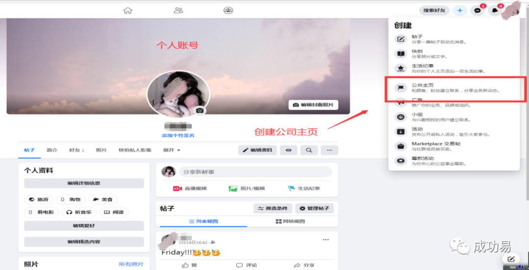 3. facebook公司主页:公司主页就类似你管理的微信公众号。
