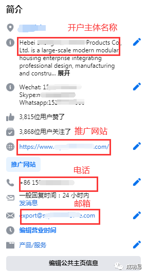3)简介里包含:开户主体名称(必须要有)、网址、邮箱、电话等联系方式 。
