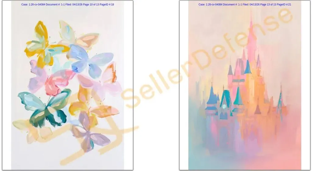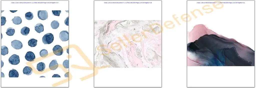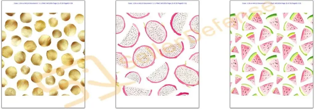 原告 Dinara Khandy 是一位跨领域艺术家,身兼平面设计师、插画师及动画师数职。Dinara Khandy 的传统绘画及图案作品主要采用水彩、亚克力颜料或墨水创作,风格往往抽象、轻盈且飘逸。
