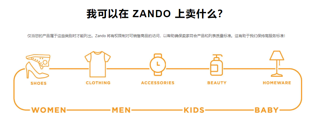 下图为可以在Zando入驻的产品: