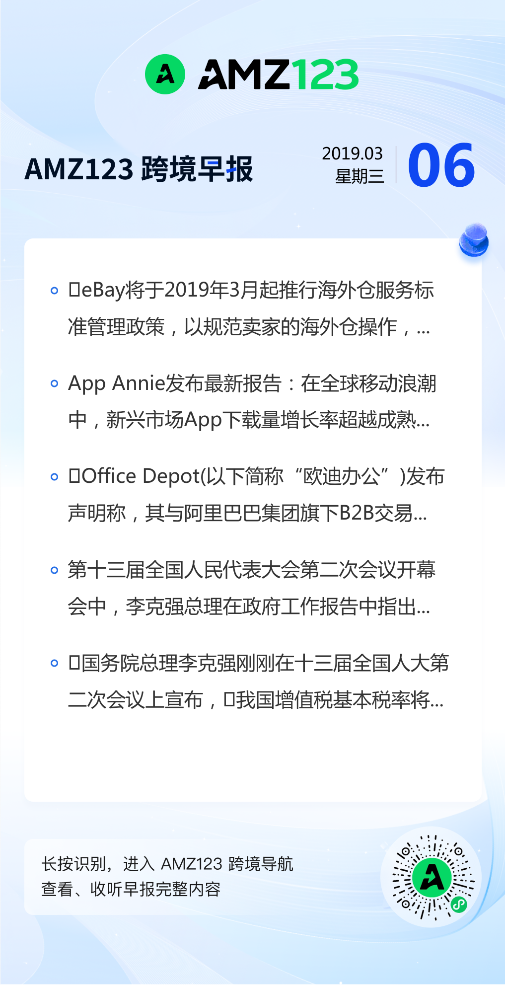 查看更多 2019年3月6号跨境早报