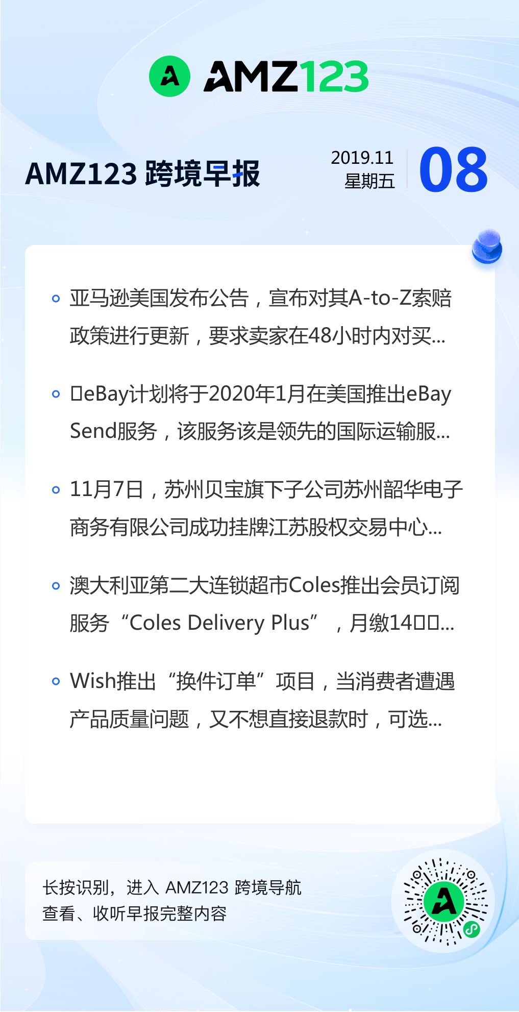 亚马逊美国发布公告,宣布对其A-to-Z索赔政策进行更新,要求卖家在48小时内对买家退货请求作出回应。