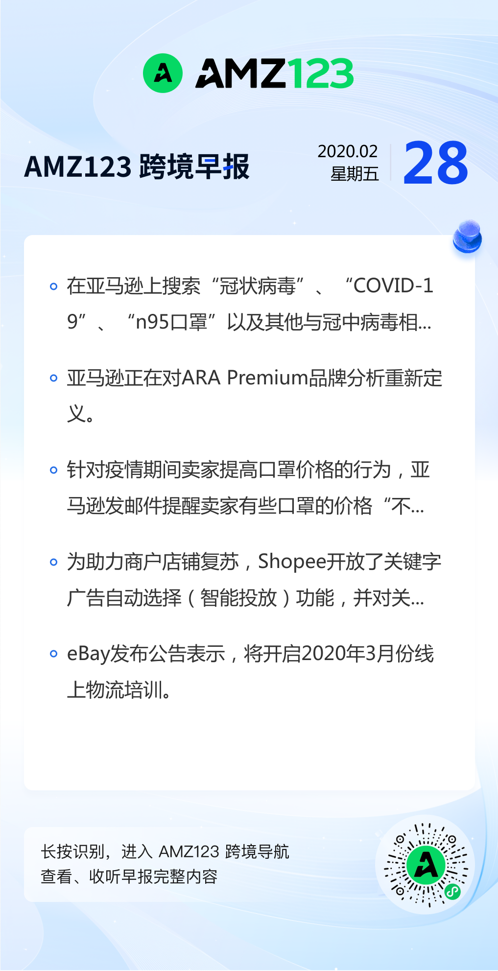 针对疫情期间卖家提高口罩价格的行为,亚马逊发邮件提醒卖家有些口罩的价格“不符合”其定价规定,并且警告这些卖家不要将价格提得太高,否则将被踢出亚马逊平台。