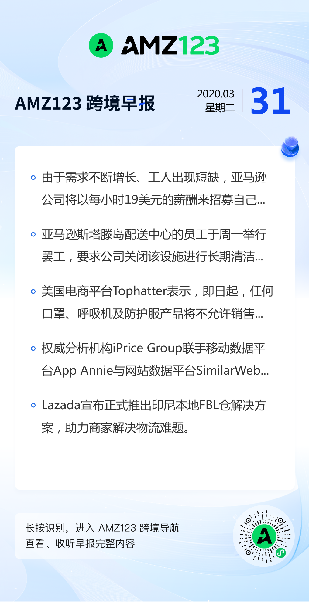 由于需求不断增长、工人出现短缺,亚马逊公司将以每小时19美元的薪酬来招募自己的仓库员工完成全食超市的杂货挑选及包装工作。