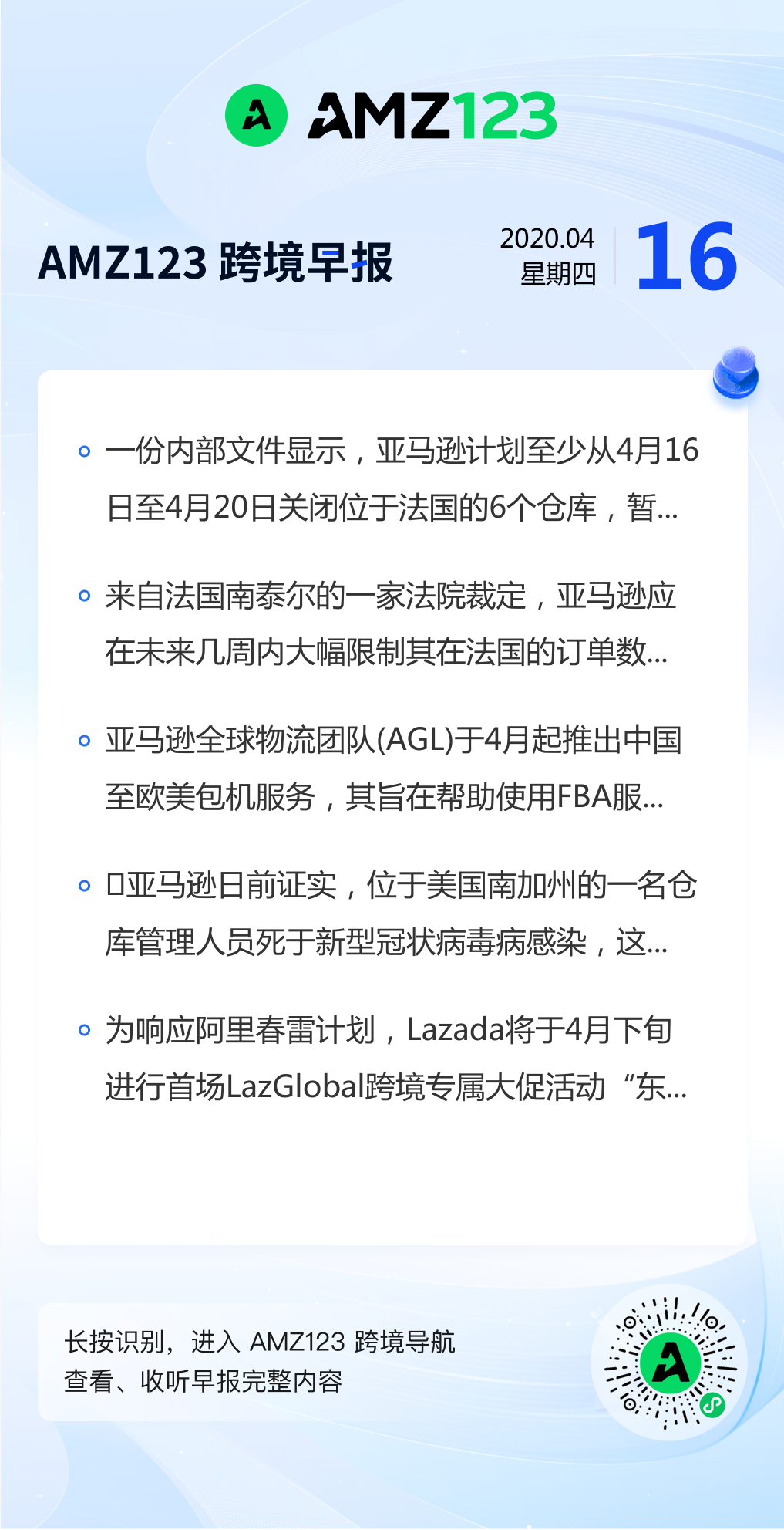 一份内部文件显示,亚马逊计划至少从4月16日至4月20日关闭位于法国的6个仓库,暂停仓库的一切运营活动。
