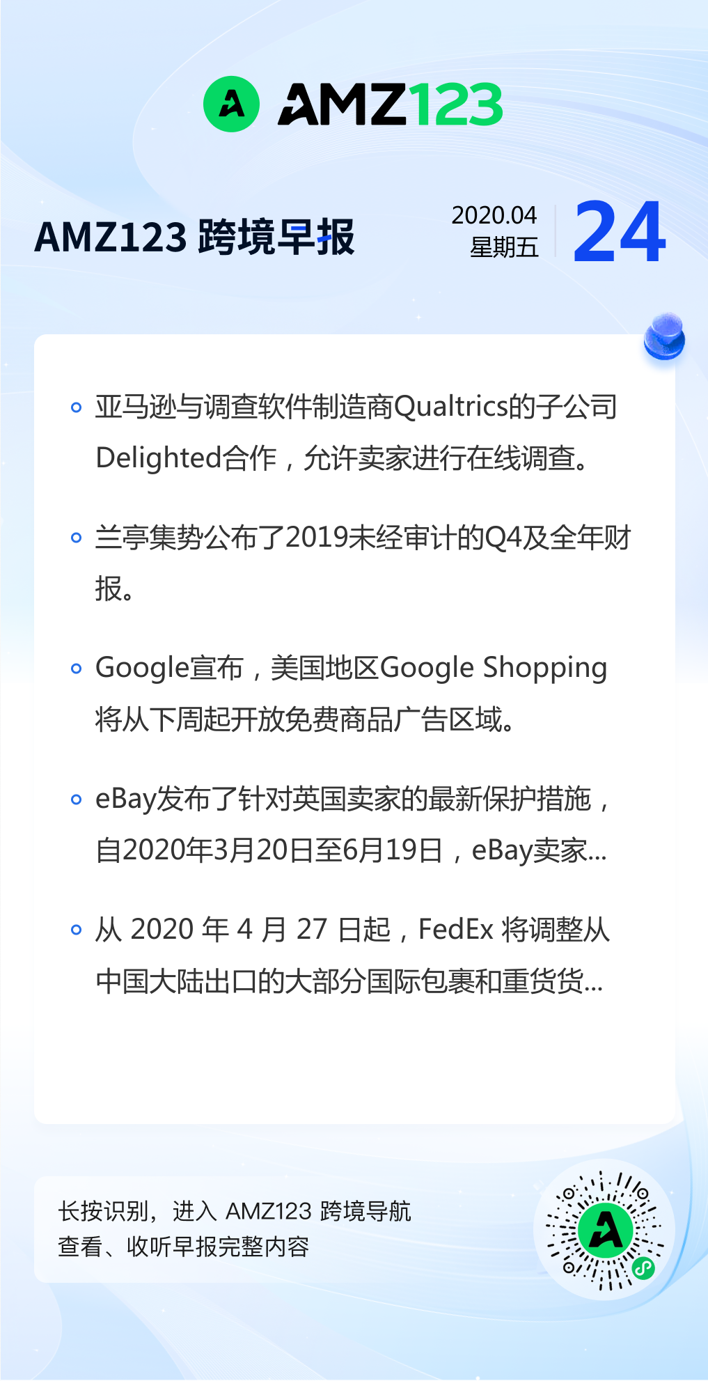 查看更多 2020年4月24号跨境早报