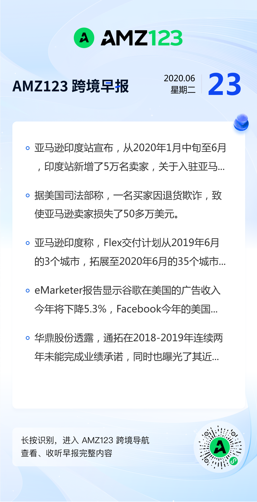 亚马逊印度站宣布,从2020年1月中旬至6月,印度站新增了5万名卖家,关于入驻亚马逊印度站的搜索量增加了40%。
