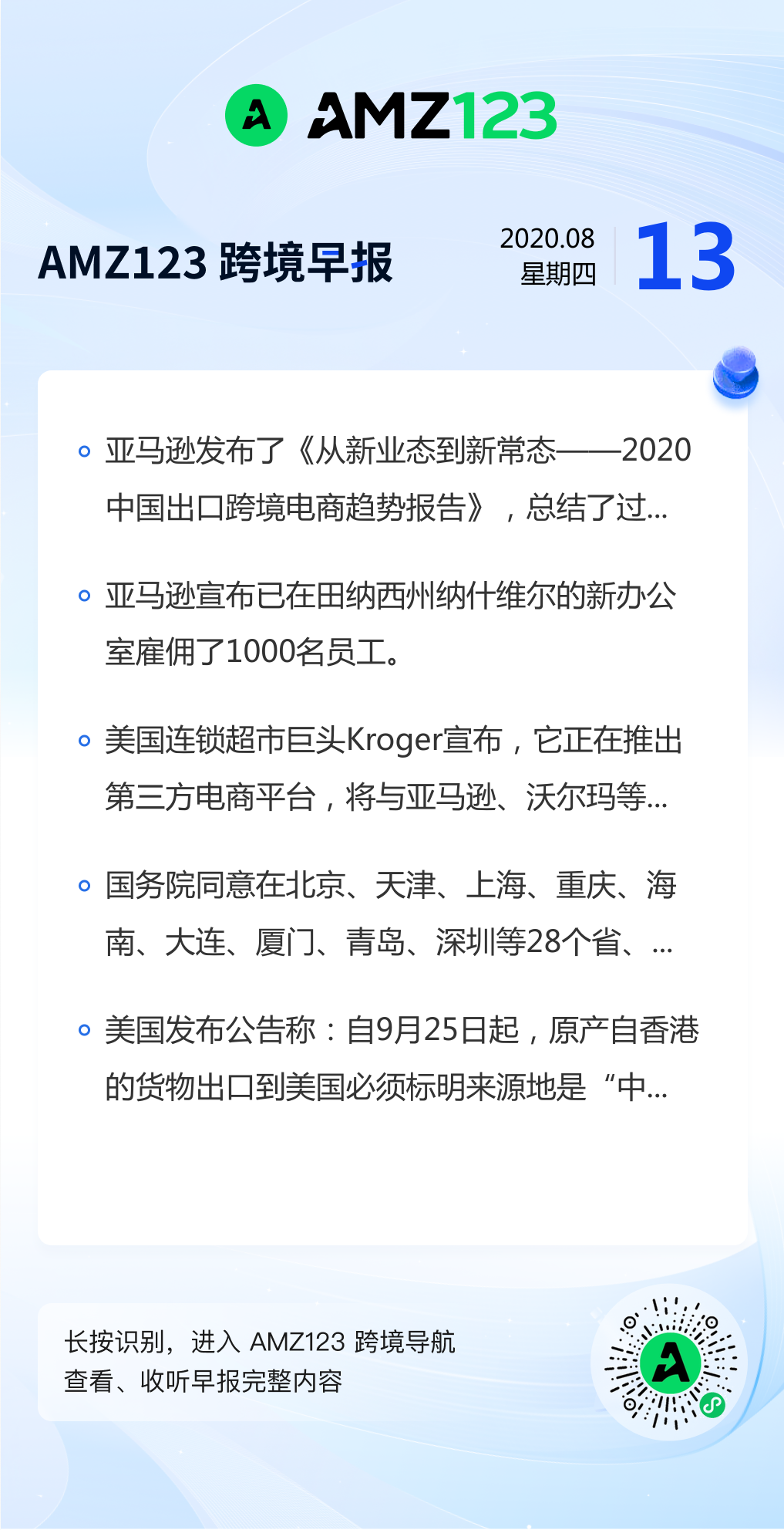 查看更多 2020年8月13号跨境早报