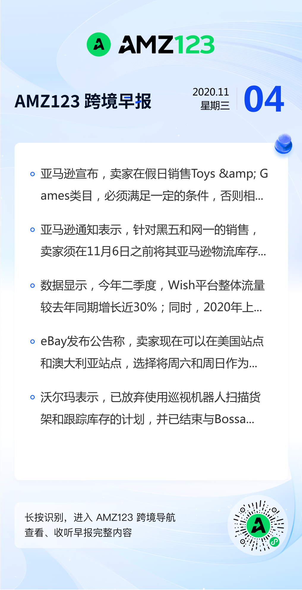 查看更多 2020年11月4号跨境早报