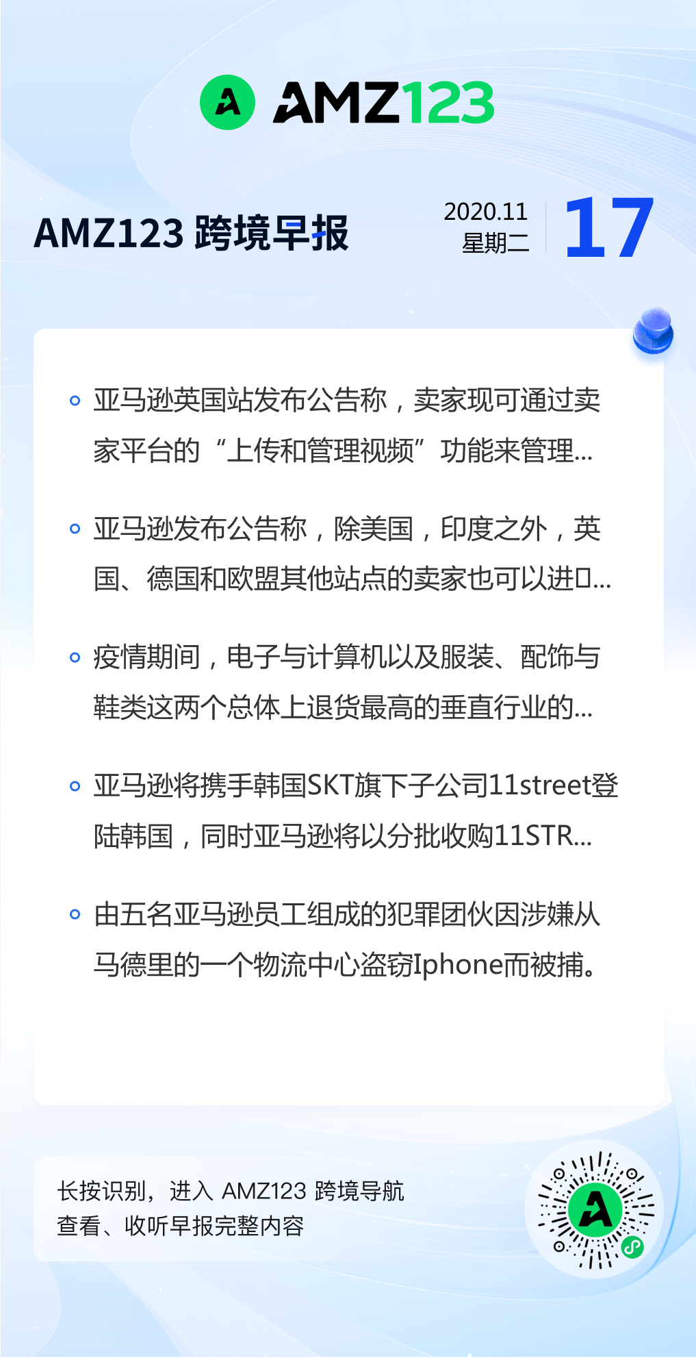 亚马逊英国站发布公告称,卖家现可通过卖家平台的“上传和管理视频”功能来管理视频。