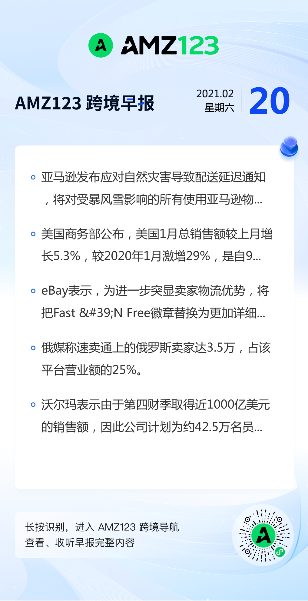 美国商务部公布,美国1月总销售额较上月增长5.3%,较2020年1月激增29%,是自9月以来首次月度增长,预测今年下半年美国电商增长将更强劲。