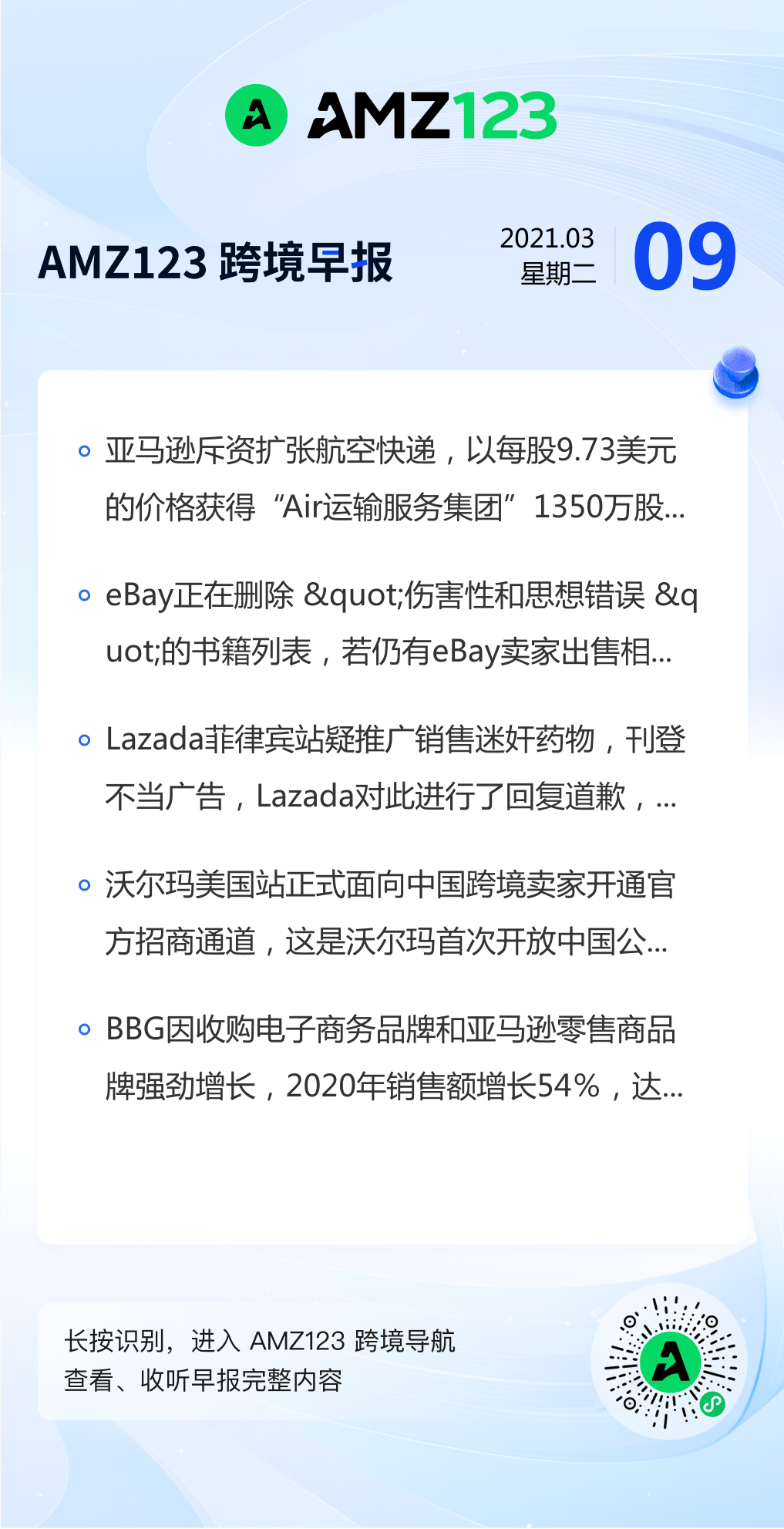 亚马逊斥资扩张航空快递,以每股9.73美元的价格获得“Air运输服务集团”1350万股股票,总金额为1.32亿美元。