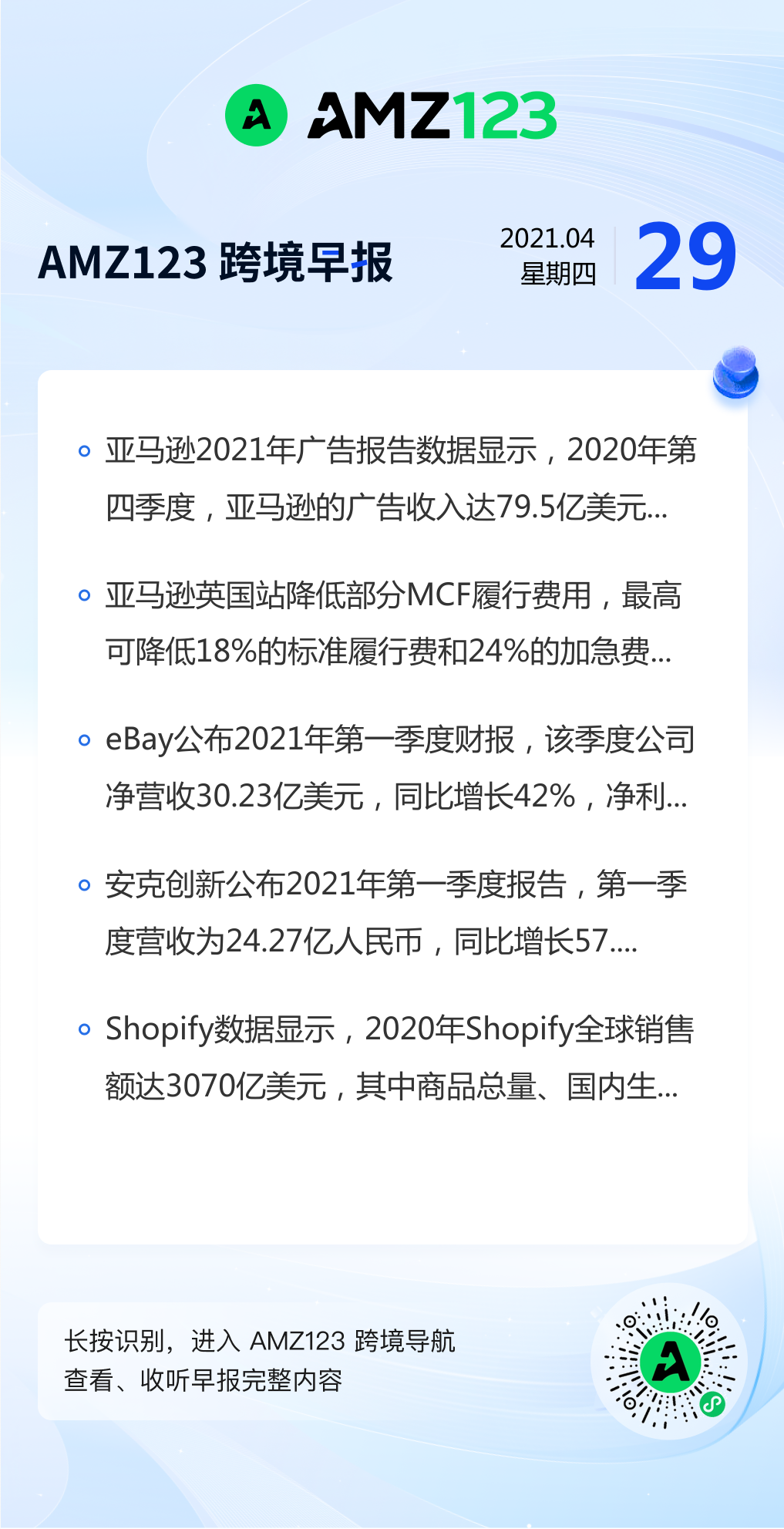 查看更多 2021年4月29号跨境早报