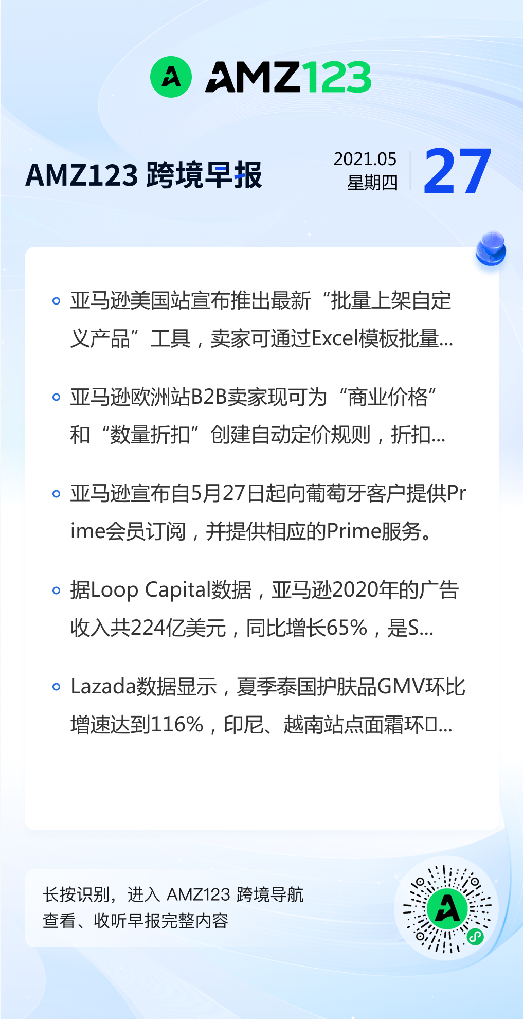 亚马逊美国站宣布推出最新“批量上架自定义产品”工具,卖家可通过Excel模板批量上架产品,还可将自定义设置应用于众多ASIN。