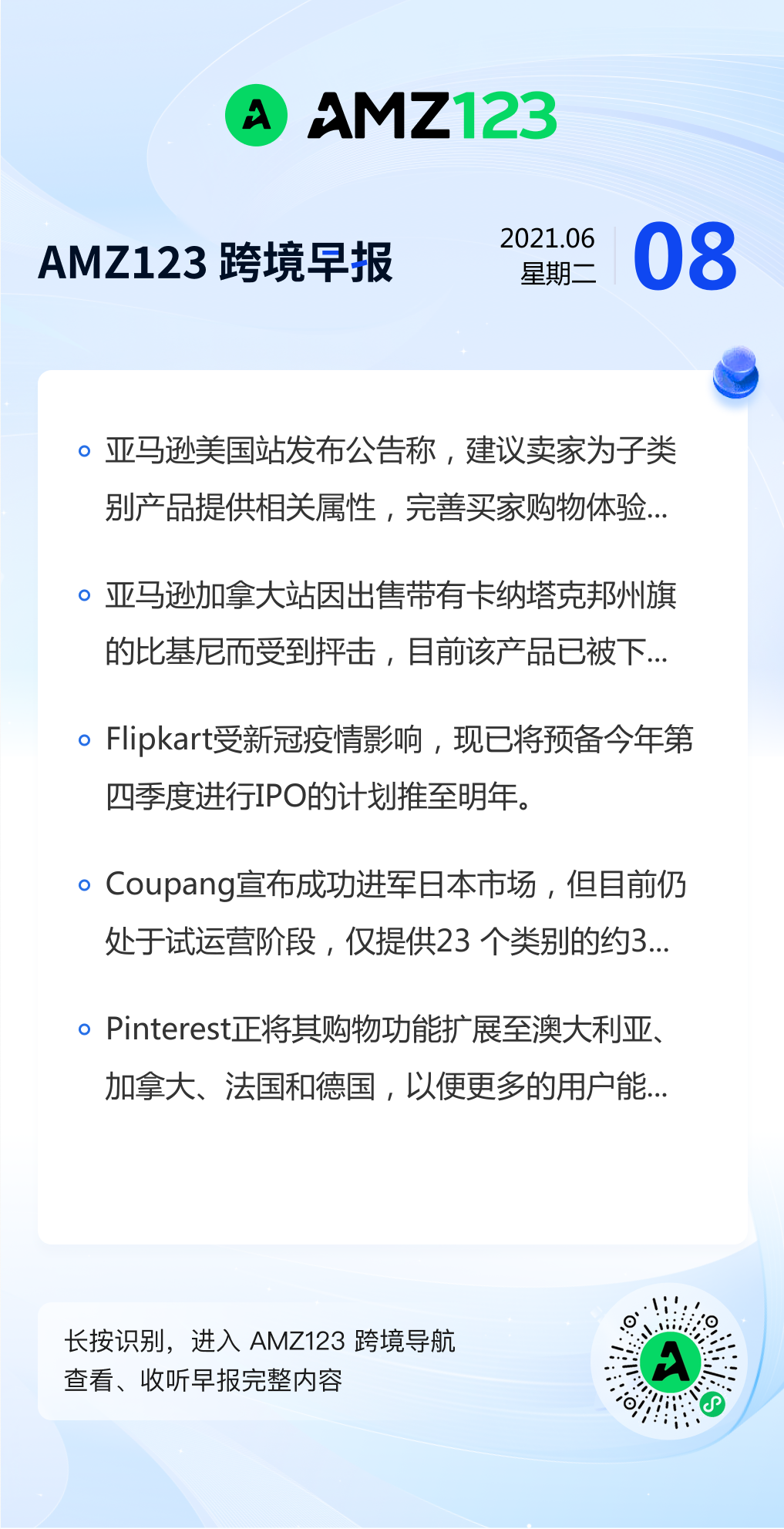 亚马逊美国站发布公告称,建议卖家为子类别产品提供相关属性,完善买家购物体验以提高转化率。
