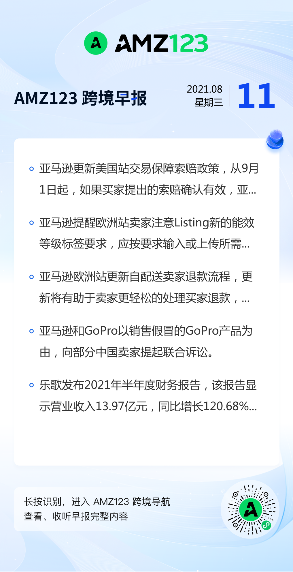 亚马逊更新美国站交易保障索赔政策,从9月1日起,如果买家提出的索赔确认有效,亚马逊将支付在1000美元以下的赔偿,卖家无需承担成本。