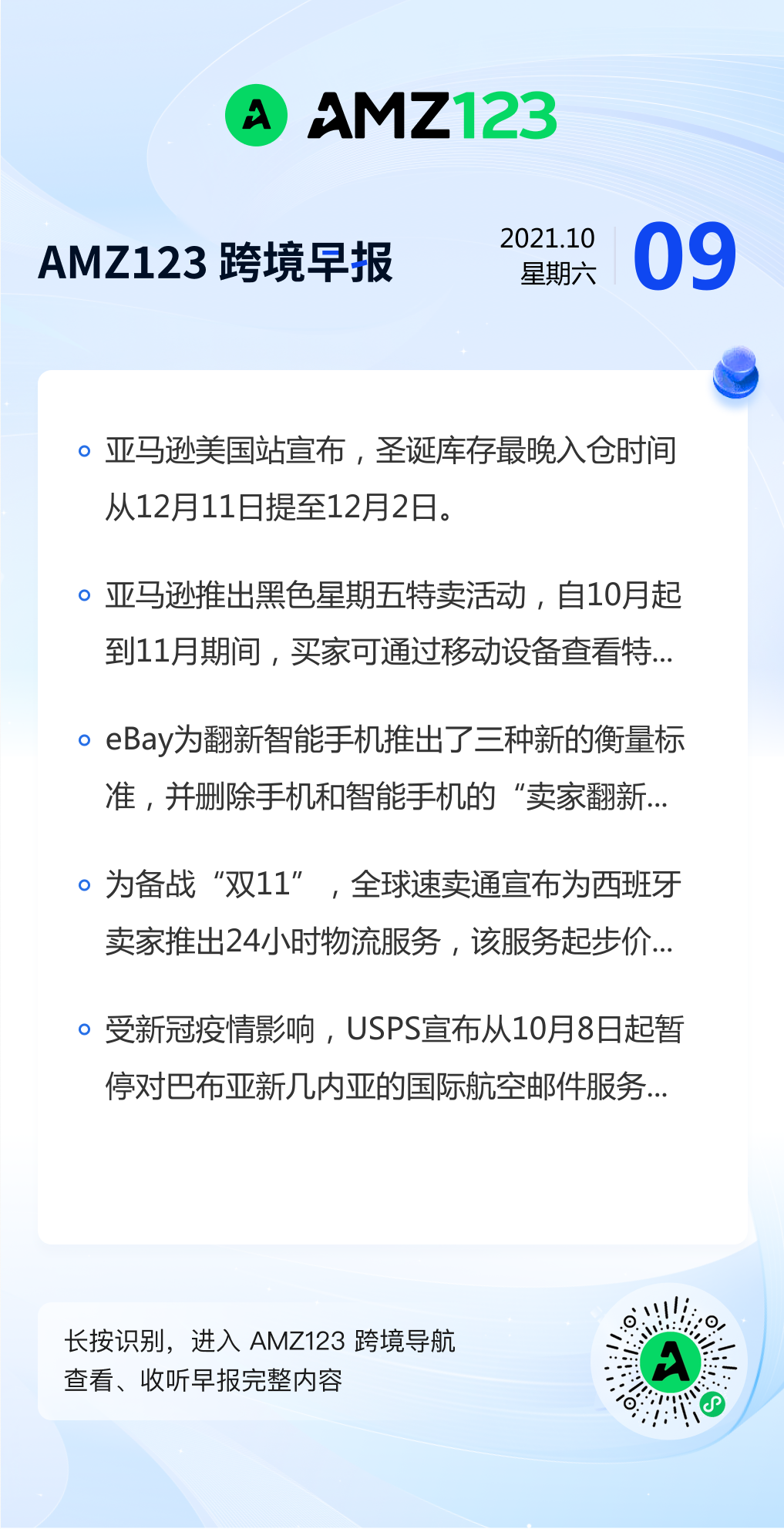 查看更多 2021年10月9号跨境早报