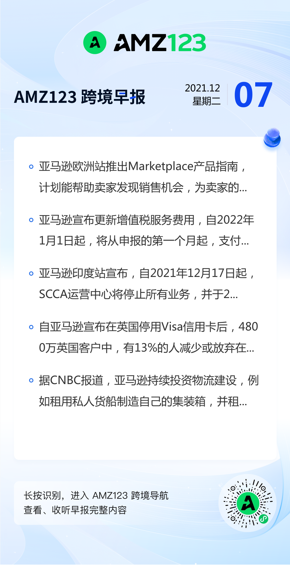 亚马逊宣布更新增值税服务费用,自2022年1月1日起,将从申报的第一个月起,支付每月33.30欧元的月费,用于增值税申报和财务代表。