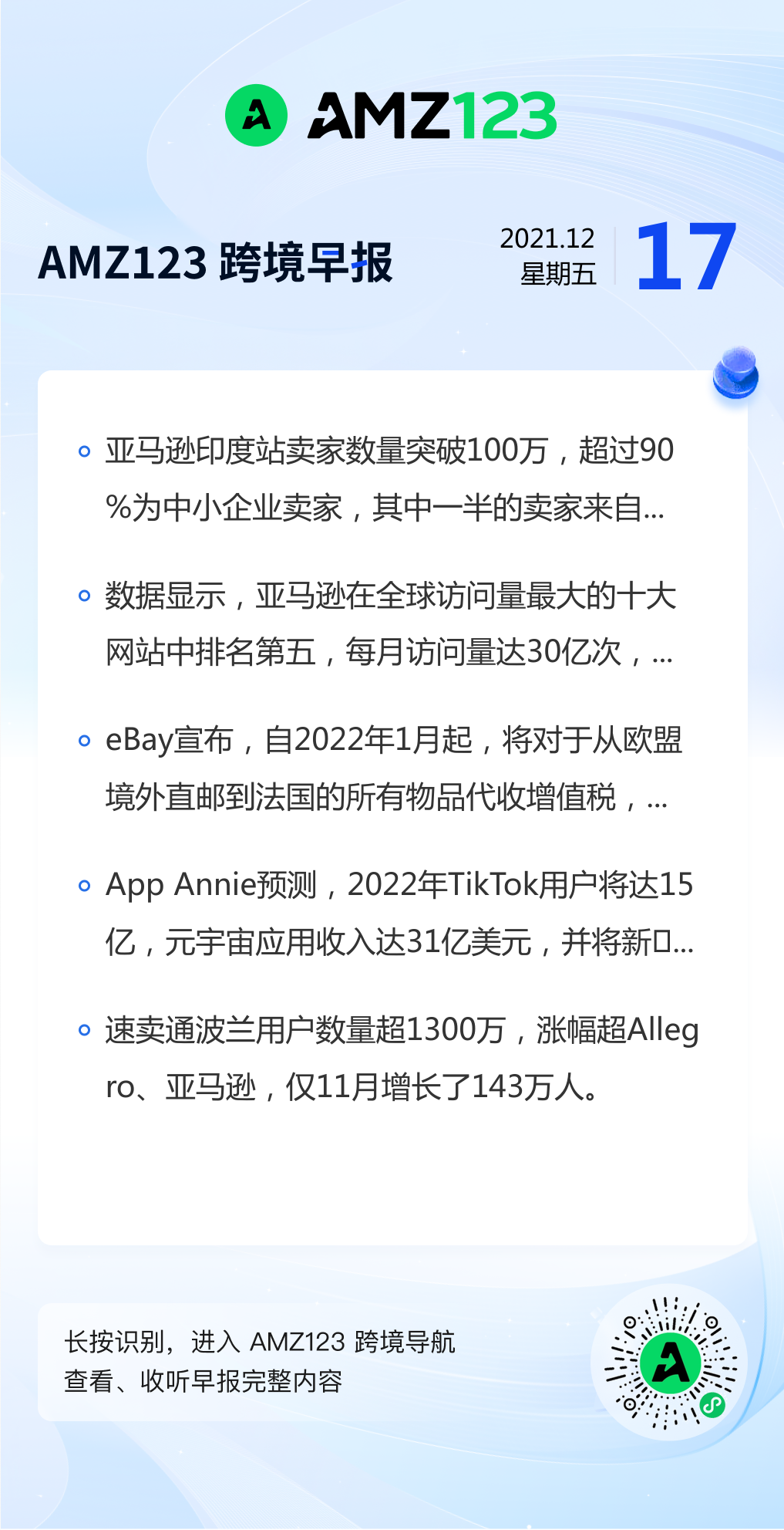 亚马逊印度站卖家数量突破100万,超过90%为中小企业卖家,其中一半的卖家来自二三线城市。