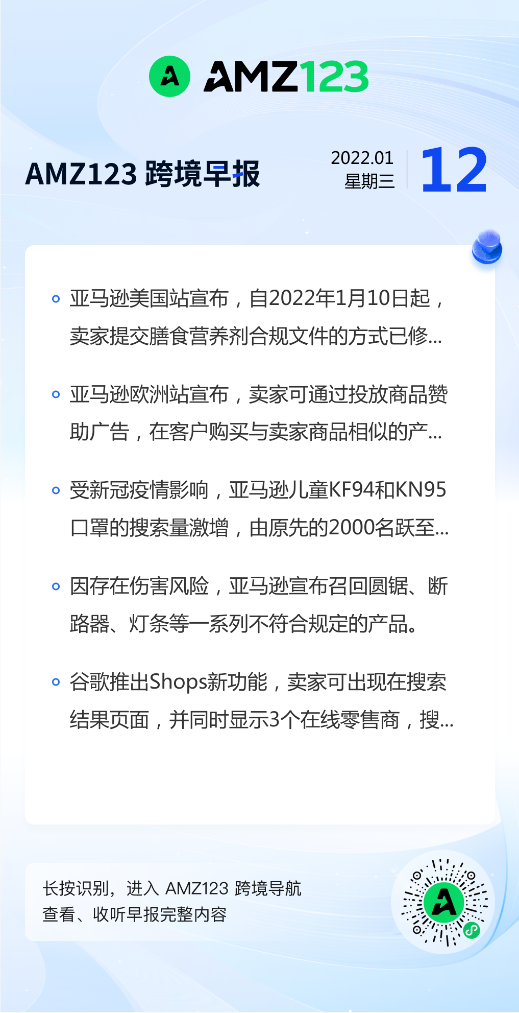 查看更多 2022年1月12号跨境早报