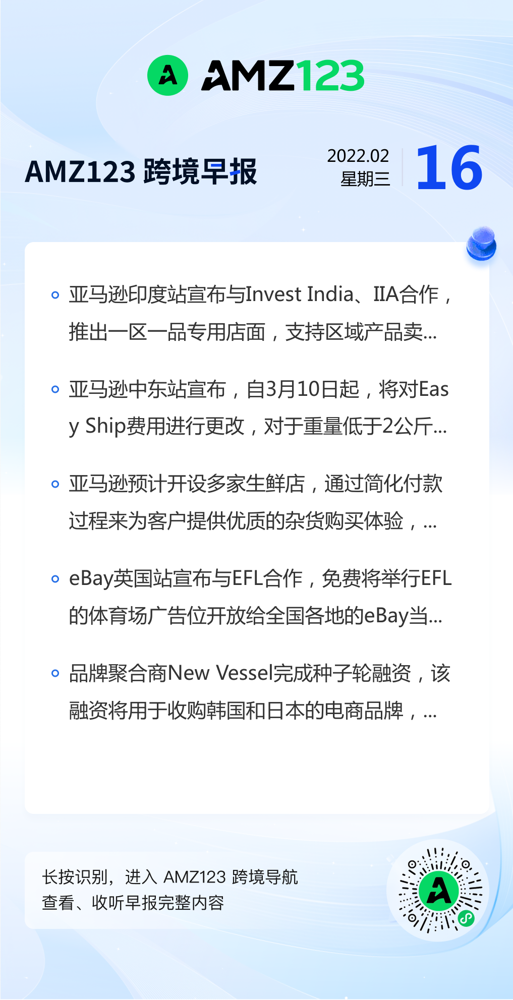 亚马逊印度站宣布与Invest India、IIA合作,推出一区一品专用店面,支持区域产品卖家发展线上业务。