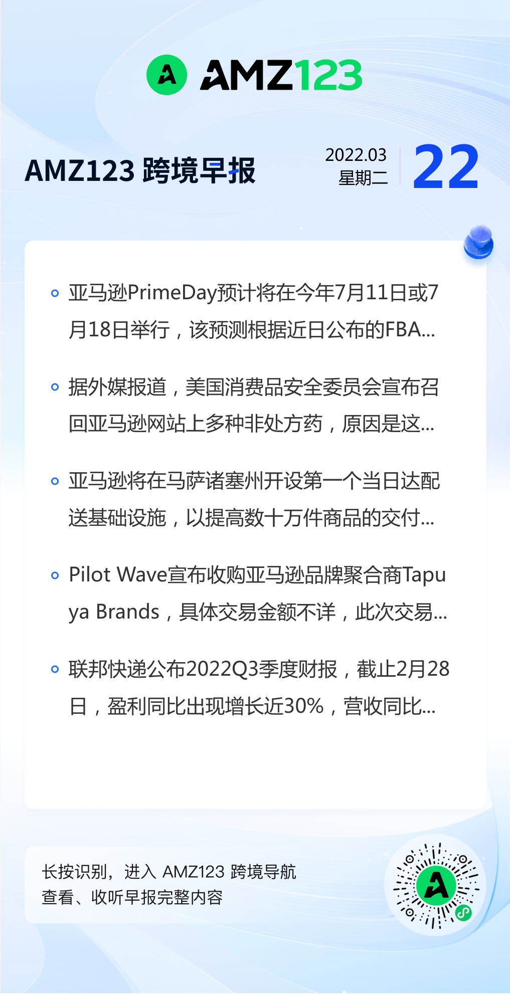 查看更多 2022年3月22号跨境早报