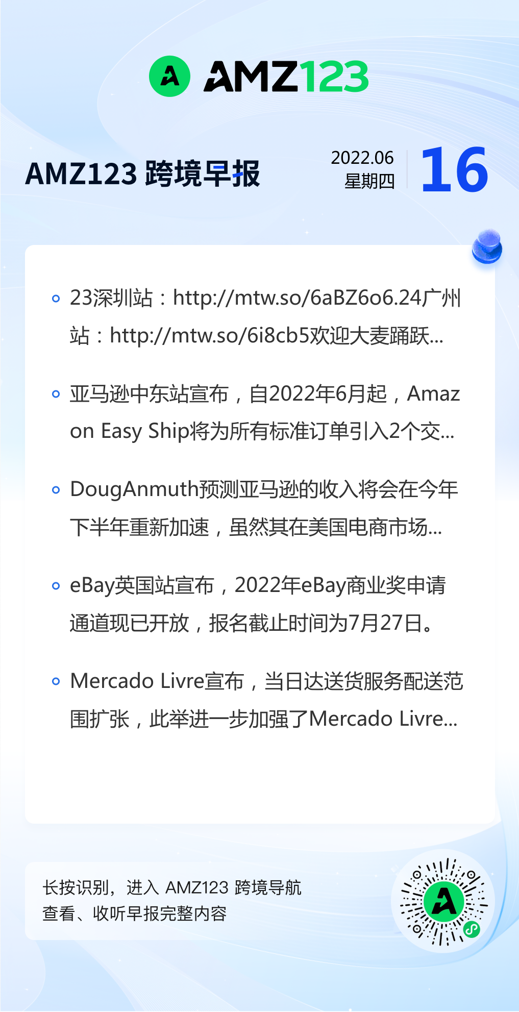 查看更多 2022年6月16号跨境早报