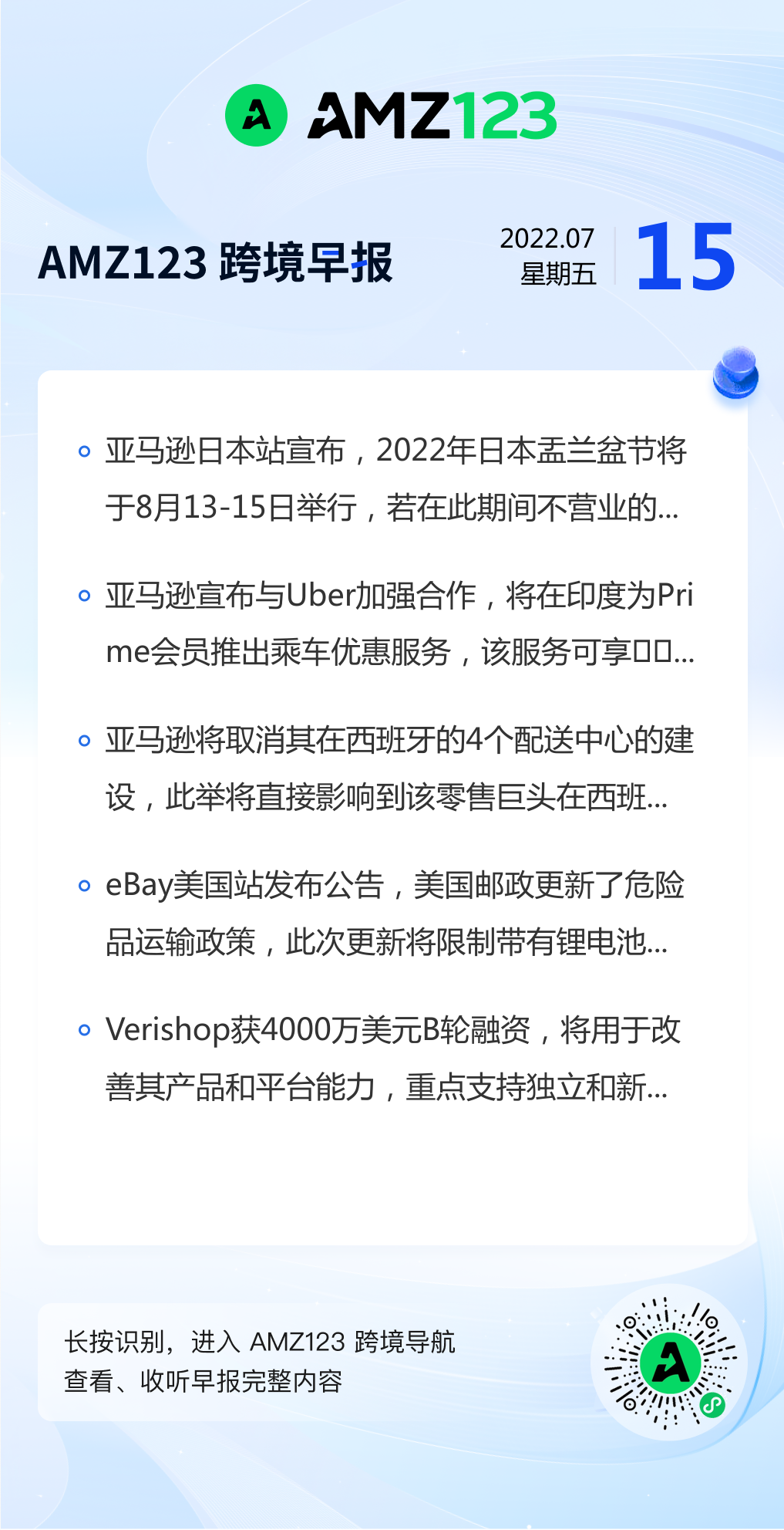 查看更多 2022年7月15号跨境早报