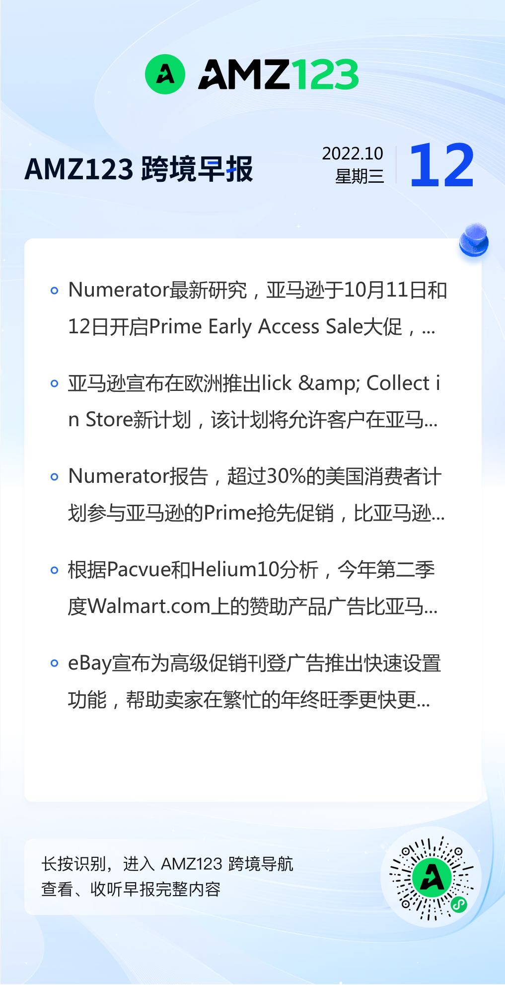 Numerator最新研究,亚马逊于10月11日和12日开启Prime Early Access Sale大促,其在消费品市场的份额将进一步增长。
