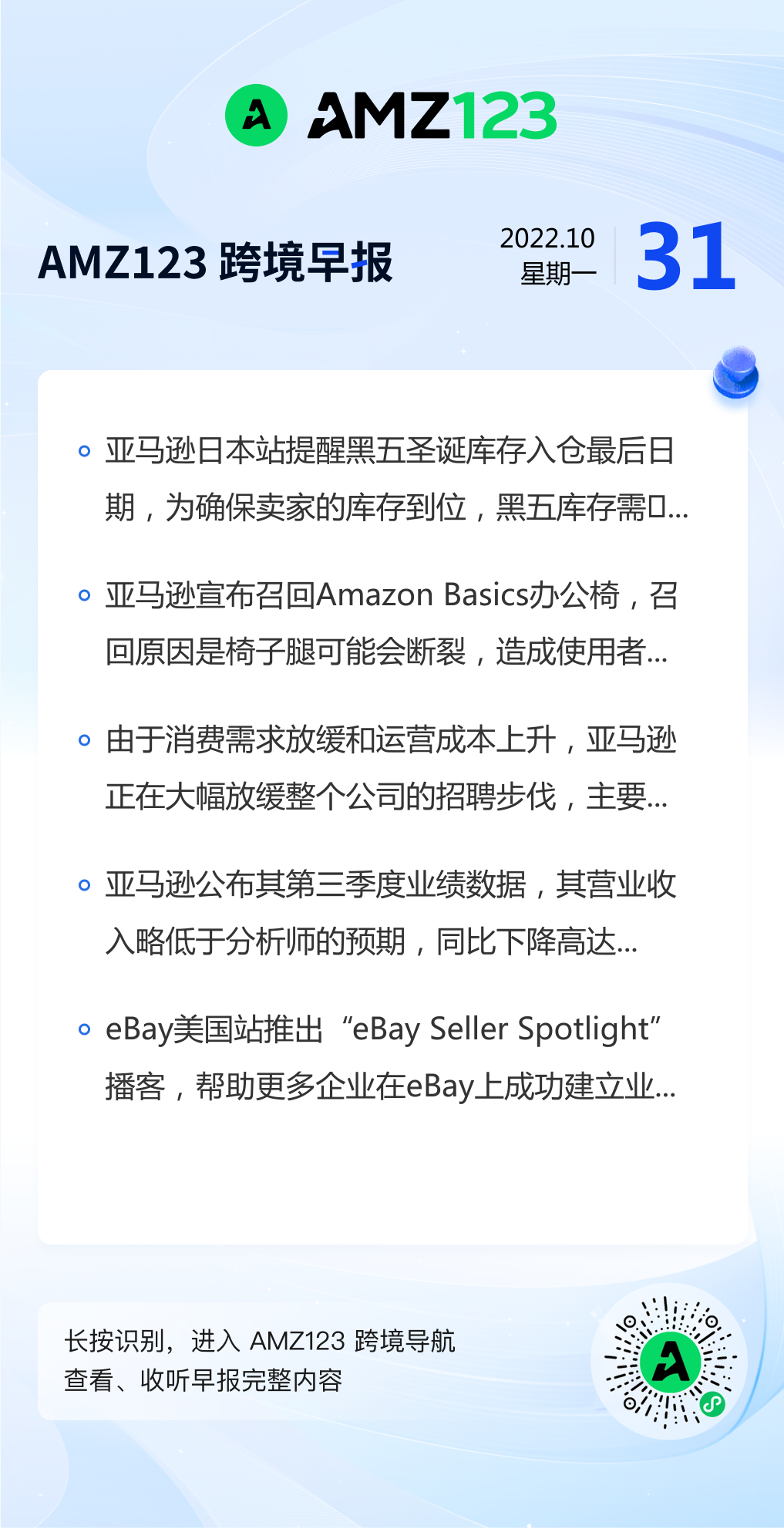 查看更多 2022年10月31号跨境早报