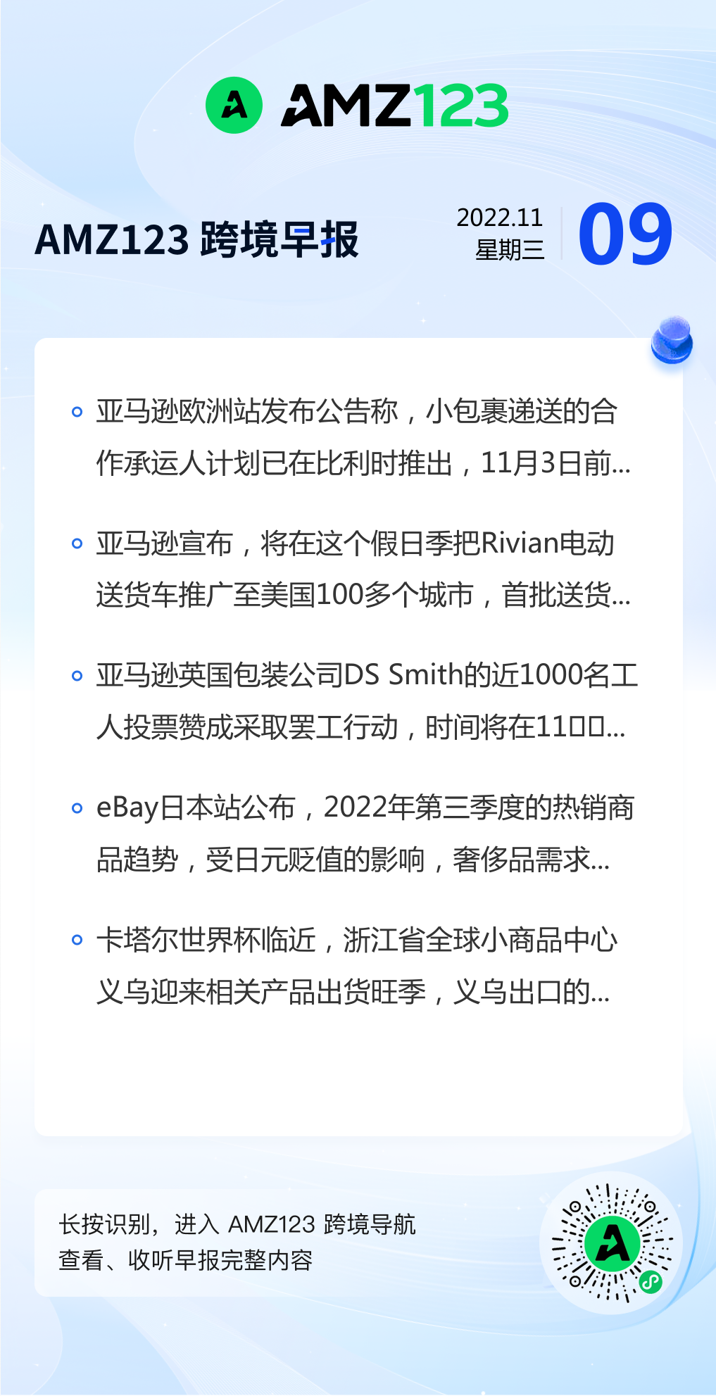 查看更多 2022年11月9号跨境早报