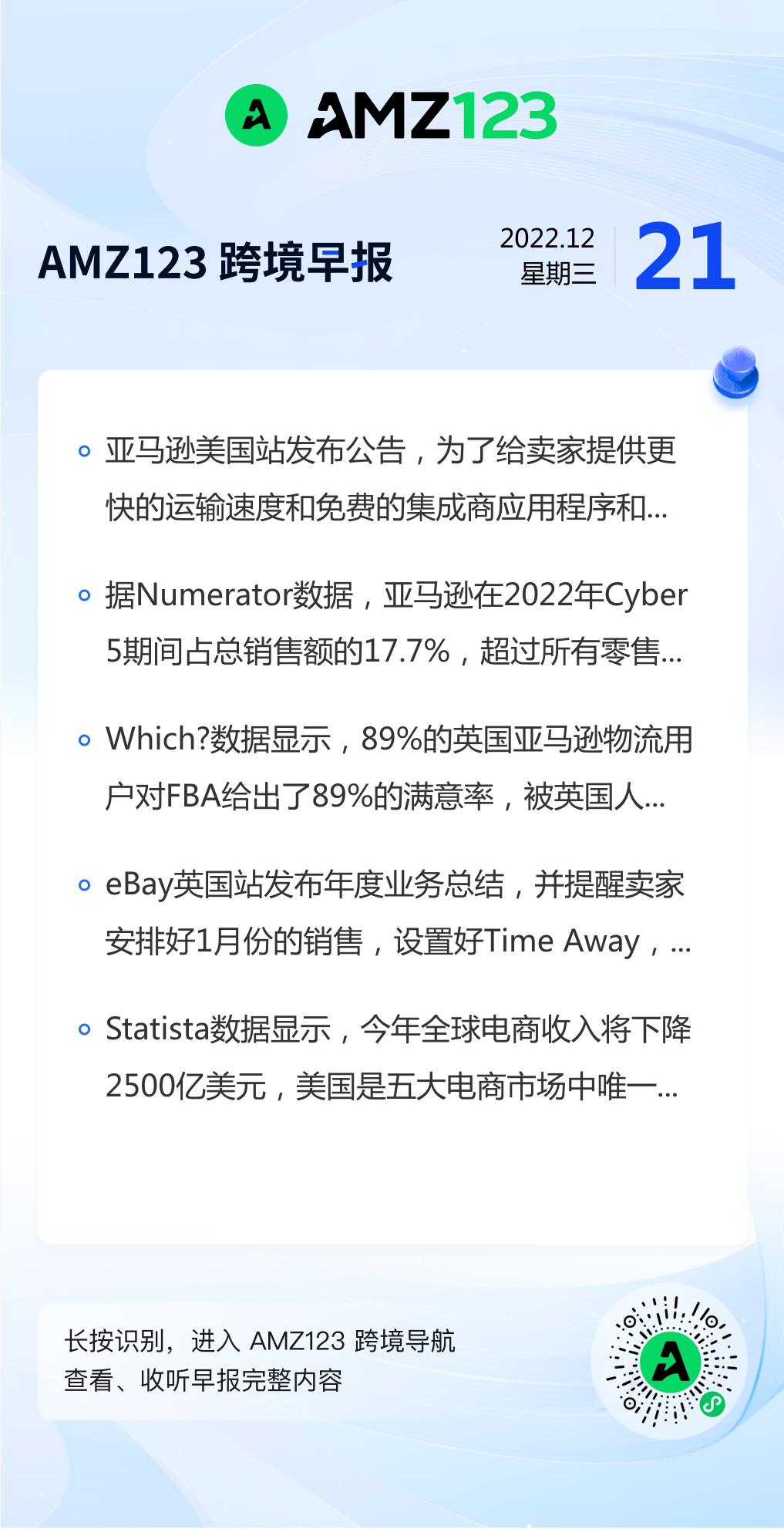 亚马逊美国站发布公告,为了给卖家提供更快的运输速度和免费的集成商应用程序和增强的货运跟踪功能,将从2023年1月19日起上调MCF费用。