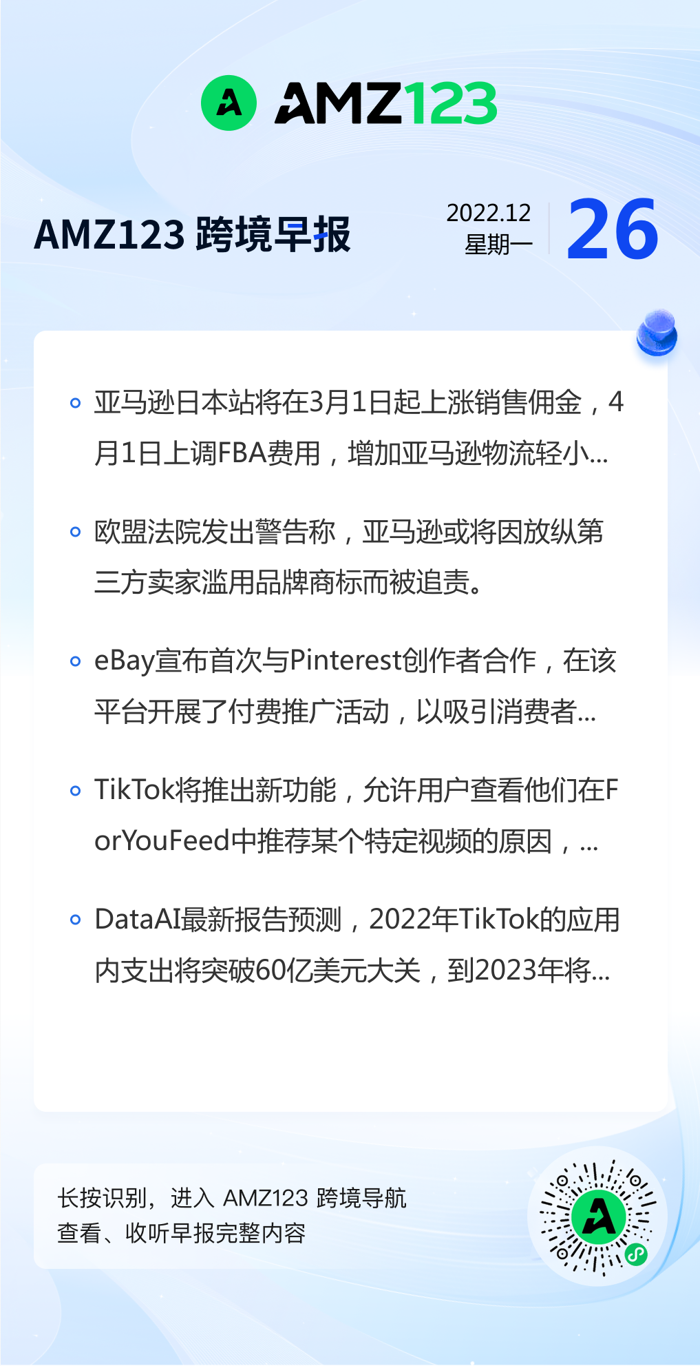 亚马逊日本站将在3月1日起上涨销售佣金,4月1日上调FBA费用,增加亚马逊物流轻小商品计划运费和库存仓储费,取消买家进货费,提高FBA长期库存附加费 ,并推出亚马逊物流新产品奖励计划。