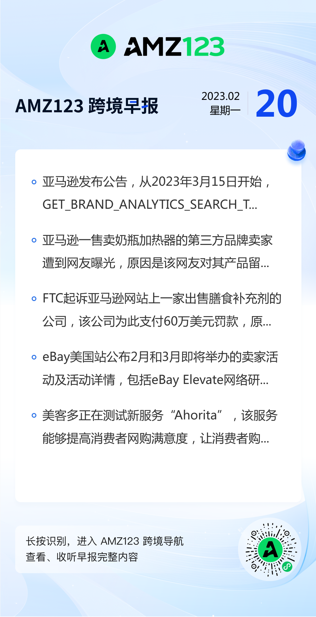 查看更多 2023年2月20号跨境早报