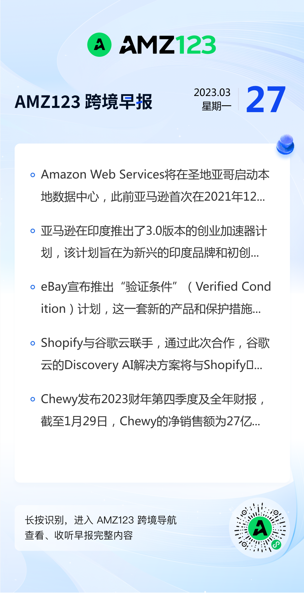 查看更多 2023年3月27号跨境早报