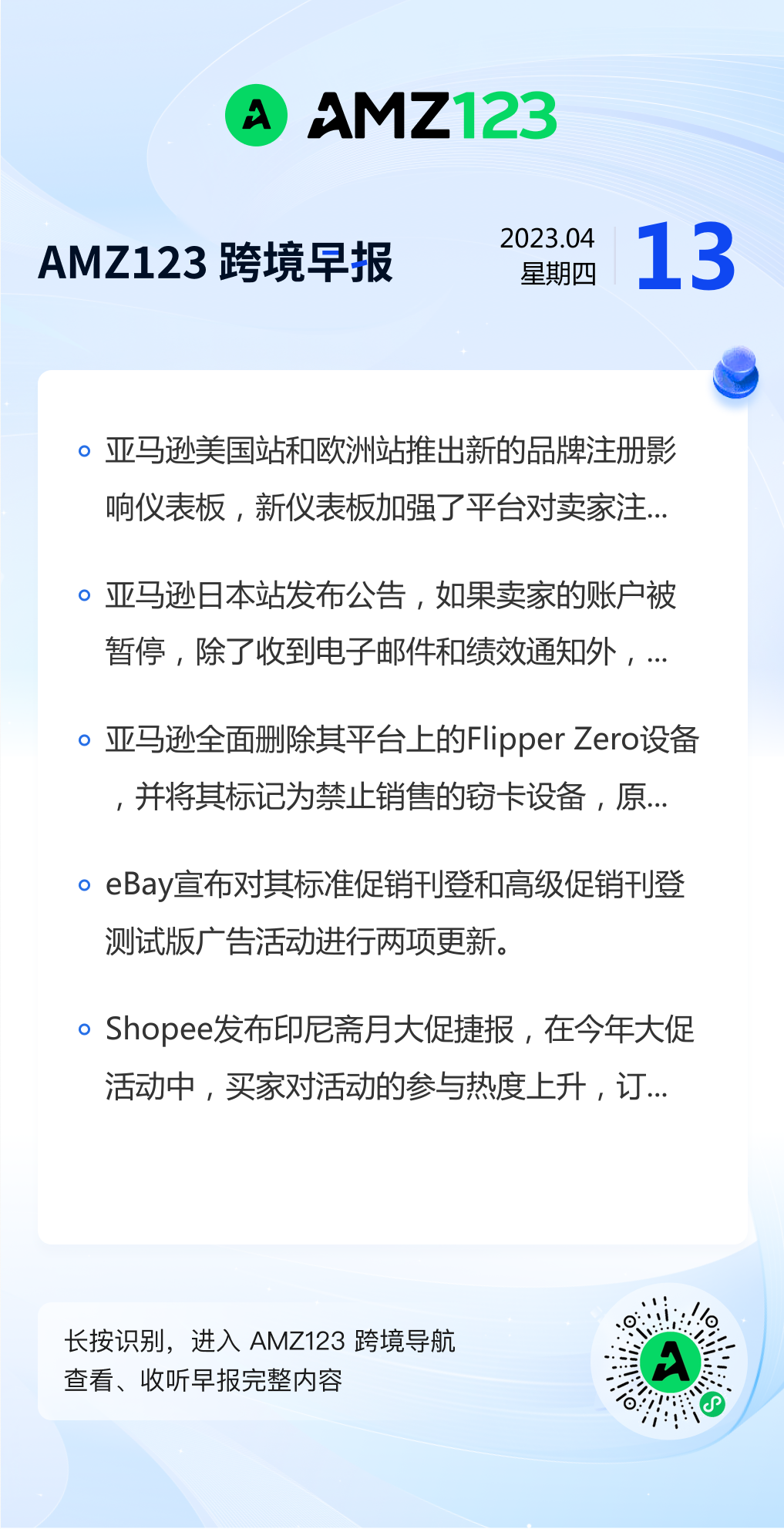 亚马逊美国站和欧洲站推出新的品牌注册影响仪表板,新仪表板加强了平台对卖家注册品牌的保护力度。