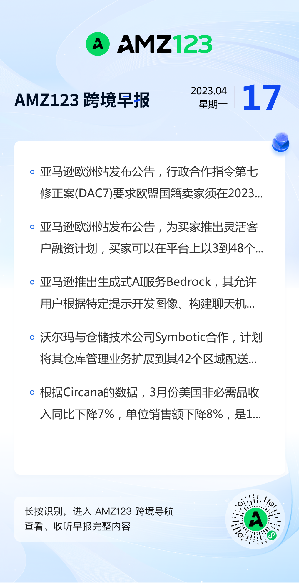 查看更多 2023年4月17号跨境早报