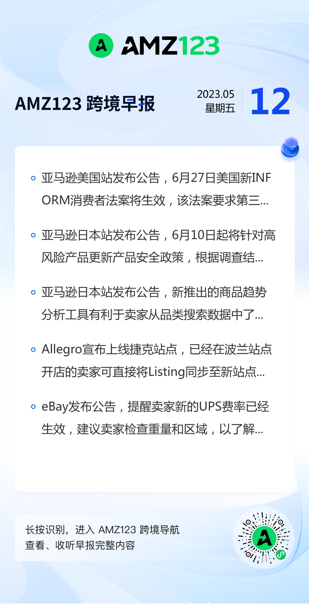 亚马逊美国站发布公告,6月27日美国新INFORM消费者法案将生效,该法案要求第三方卖家提供其业务的相关信息,卖家需完成验证,否则将停用卖家账户。