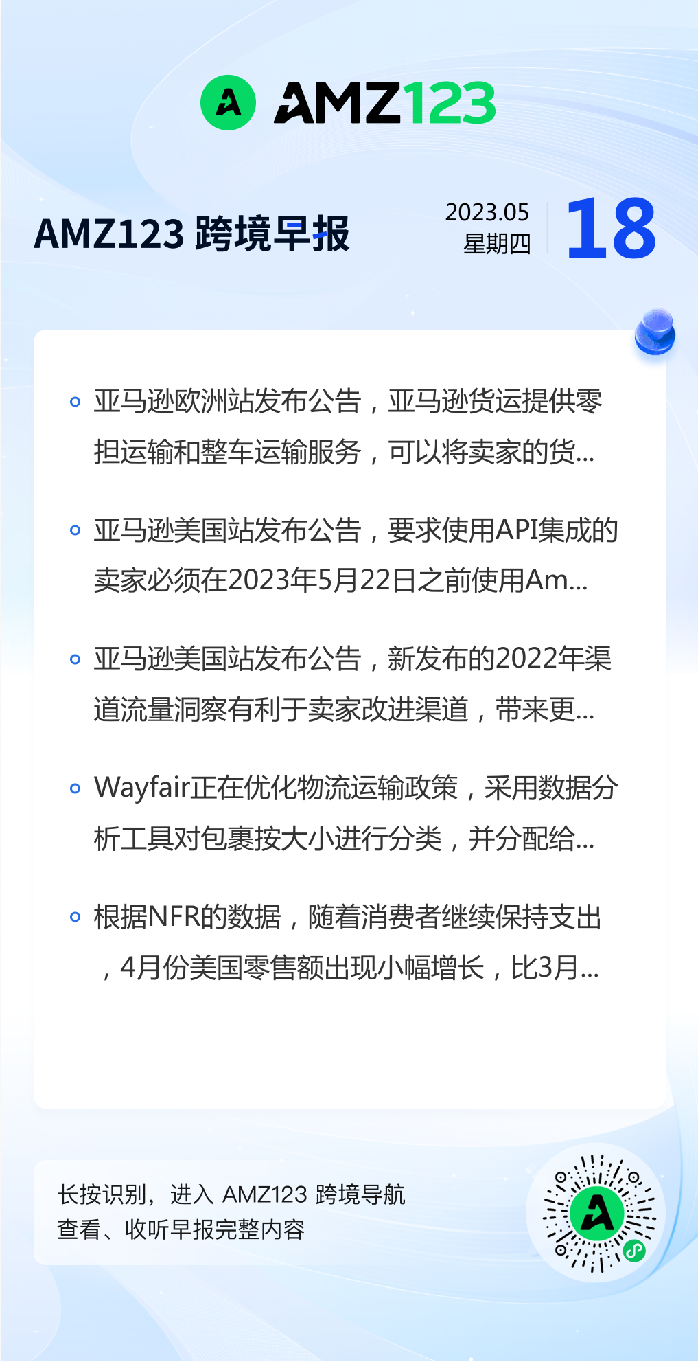 亚马逊美国站发布公告,要求使用API集成的卖家必须在2023年5月22日之前使用Amazon凭据更新登录,如果卖家每180天不更新凭据,其API集成将无法访问SP-API。