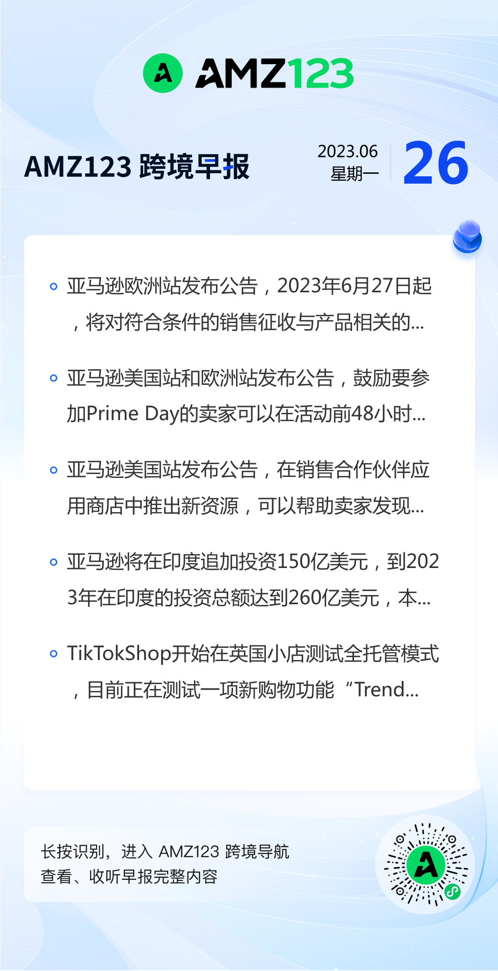查看更多 2023年6月26号跨境早报