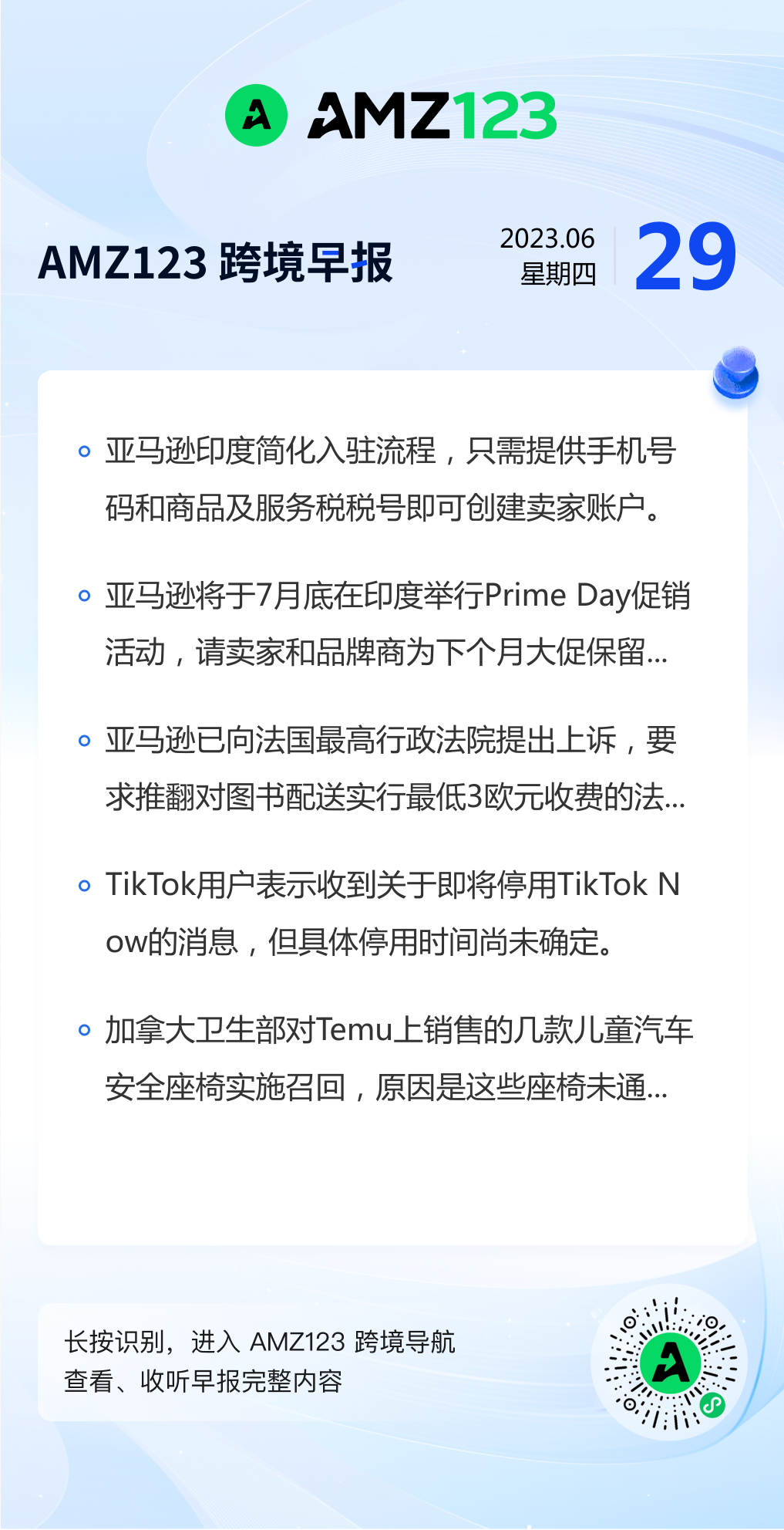 查看更多 2023年6月29号跨境早报