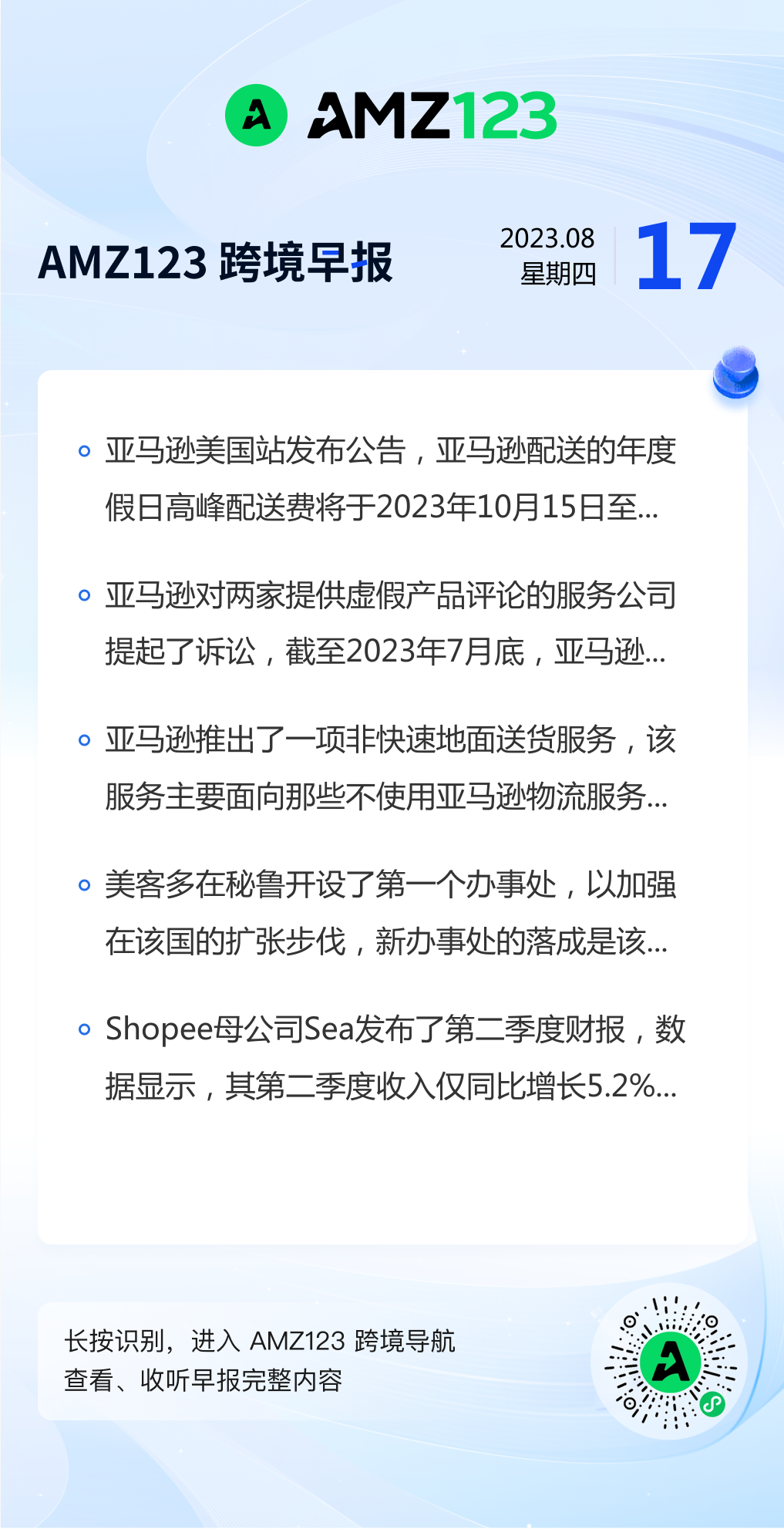 亚马逊美国站发布公告,亚马逊配送的年度假日高峰配送费将于2023年10月15日至2024年1月14日期间适用。