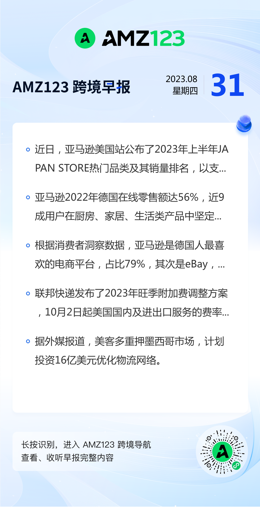 查看更多 2023年8月31号跨境早报