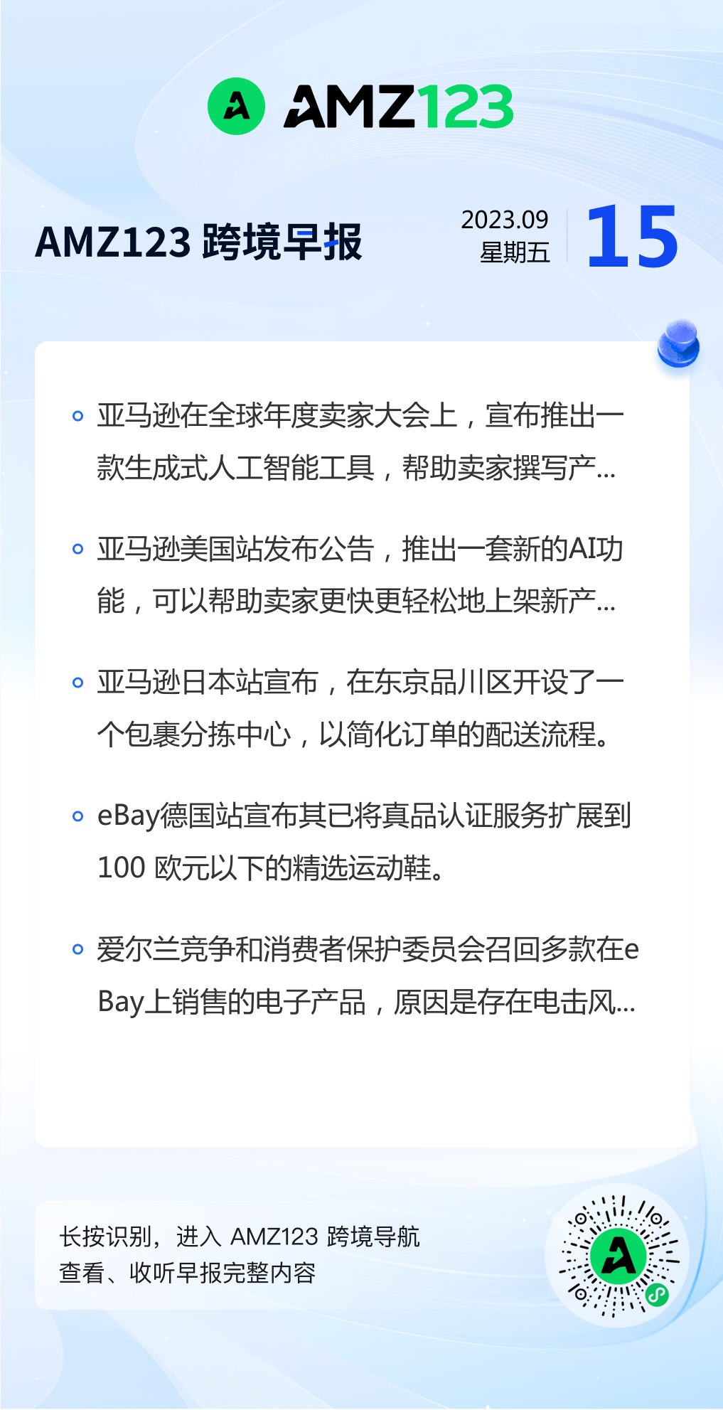 查看更多 2023年9月15号跨境早报