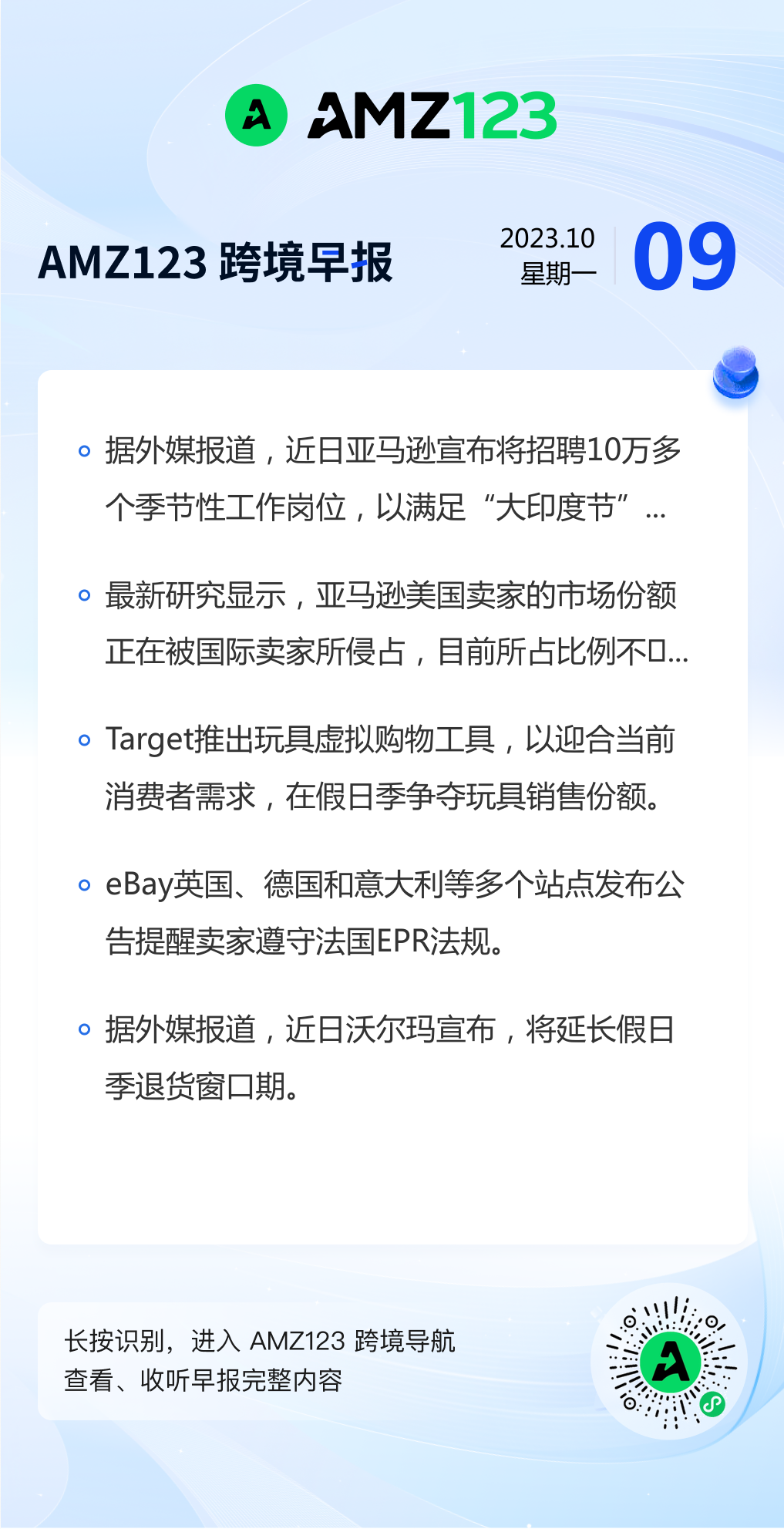 据外媒报道,近日亚马逊宣布将招聘10万多个季节性工作岗位,以满足“大印度节”期间包裹激增的需求。