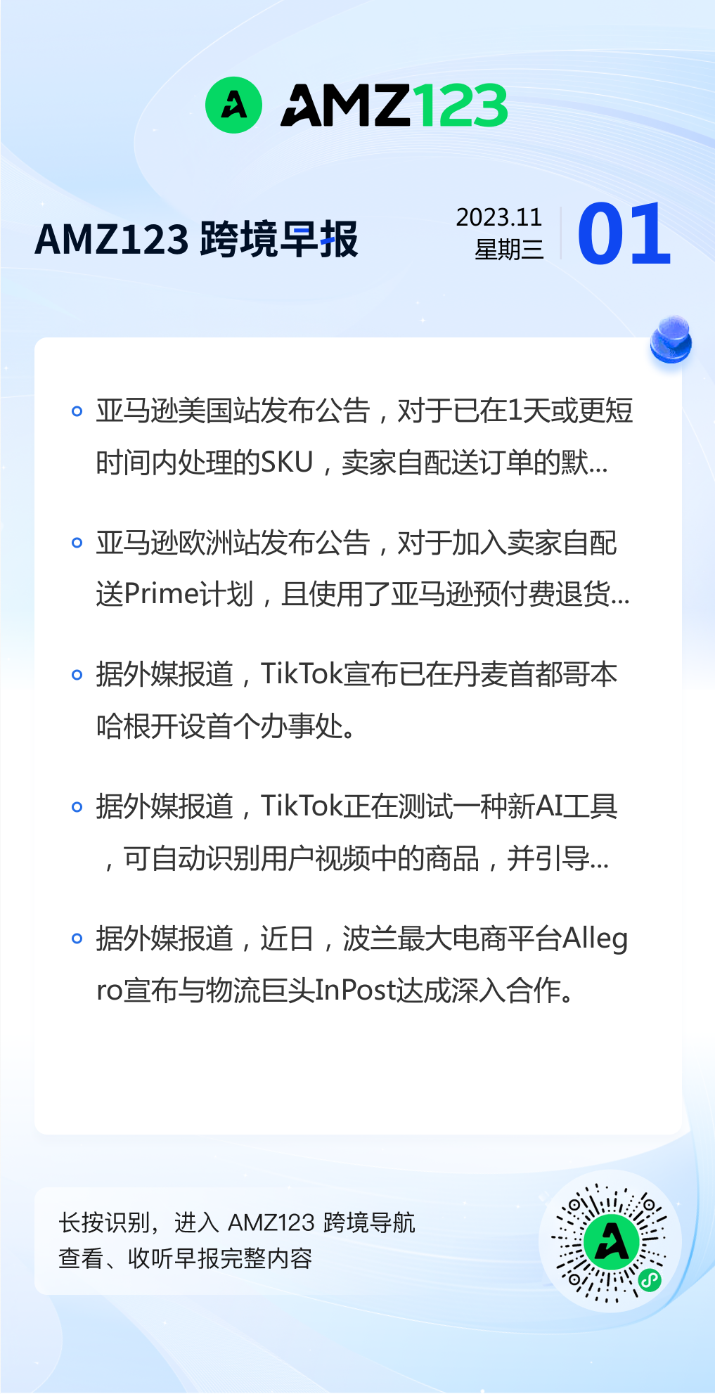 查看更多 2023年11月1号跨境早报