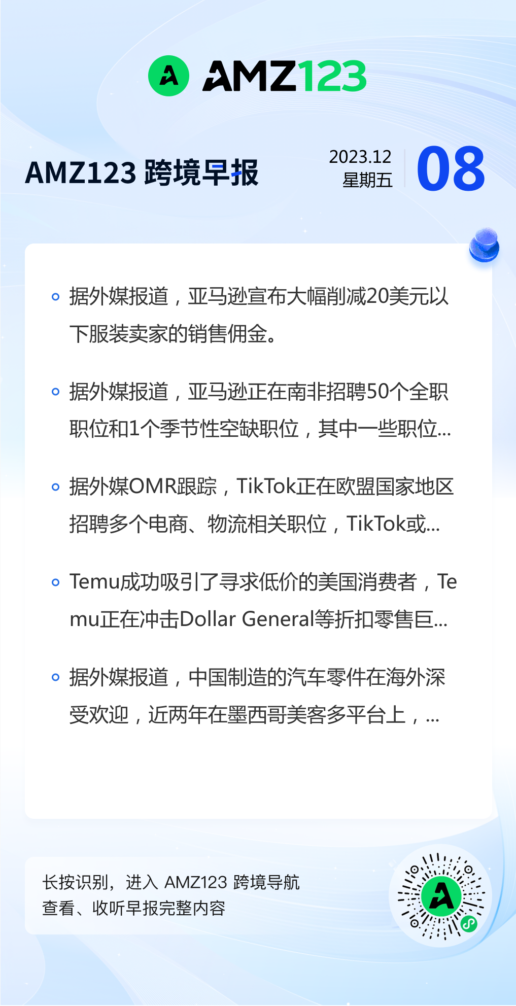 查看更多 2023年12月8号跨境早报